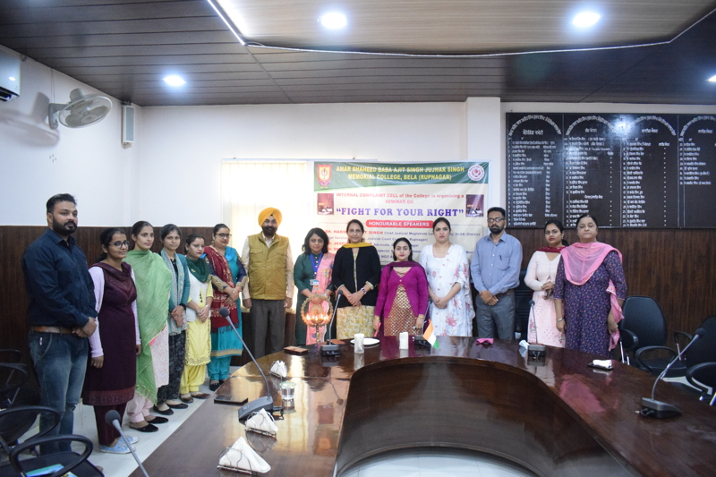 ਅਮਰ ਸ਼ਹੀਦ ਬਾਬਾ ਅਜੀਤ ਸਿੰਘ ਜੁਝਾਰ ਸਿੰਘ ਮੈਮੋਰੀਅਲ ਕਾਲਜ, ਬੇਲਾ ਦੇ ਇੰਟਰਨਲ ਕੰਪਲੇਂਟ ਸੈੱਲ ਵੱਲੋਂ ਇੱਕ ਰੋਜ਼ਾ ਆਨ-ਲਾਇਨ ਸੈਮੀਨਾਰ ਕਰਵਾਇਆ, ਜਿਸ ਦਾ ਥੀਮ 'ਫਾਇਟ ਫਾਰ ਯੁਅਰ ਰਾਇਟਜ਼' ਸੀ। ਇਸ ਸੈਮੀਨਾਰ ਵਿੱਚ ਮੁੱਖ ਵਕਤਾ ਦੇ ਤੌਰ ਤੇ ਸ. ਹਰਸਿਮਰਨਜੀਤ ਸਿੰਘ, ਚੀਫ ਜੁਡੀਸ਼ੀਅਲ ਮੈਜਿਸਟਰੇਟ, ਕਮ ਸੈਕਟਰੀ ਡੀ.ਐਲ.ਐਸ.ਏ. ਰੂਪਨਗਰ ਤੇ ਬੁਲਾਰਿਆਂ ਦੇ ਤੌਰ ਤੇ ਮੈਡਮ ਜਸਪਿੰਦਰ ਕੌਰ, ਐਡਵੋਕੇਟ ਪੰਜਾਬ ਅਤੇ ਹਰਿਆਣਾ ਹਾਈਕੋਰਟ, ਮੈਡਮ ਸਵਾਤੀ ਧੀਮਾਨ, ਸਬ-ਇੰਸਪੈਕਟਰ ਅਤੇ ਇੰਚਾਰਜ ਵੂਮੈਨ ਹੈਲਪ ਡੈਸਕ, ਥਾਣਾ ਸਦਰ ਮੋਰਿੰਡਾ ਅਤੇ ਮੈਡਮ ਮੋਨਿਕਾ ਚਾਵਲਾ ਸੀ.ਈ.ਓ.(ਐਨ.ਜੀ.ਓ.) ਐਂਟੀ ਕੁਰੱਪਸ਼ਨ ਕਰਾਇਮ ਪ੍ਰੀਵੈਨਸ਼ਨ ਕਮਿਊਨਿਟੀ ਓਰੀਐਂਟਲ ਪੋਲਿਸਿੰਗ ਸਰਵਸਿਜ਼, ਰੂਪਨਗਰ ਨੇ ਸ਼ਿਰਕਤ ਕੀਤੀ। ਕਾਲਜ ਦੇ ਪ੍ਰਿੰਸੀਪਲ ਡਾ.ਸਤਵੰਤ ਕੌਰ ਸ਼ਾਹੀ ਨੇ ਮਹਿਮਾਨਾਂ ਦਾ ਸਵਾਗਤ ਕਰਦਿਆਂ ਹੋਇਆਂ ਦੱਸਿਆ ਕਿ ਇਸ ਸੈਮੀਨਾਰ ਵਿੱਚ ੩੮੦ ਦੇ ਕਰੀਬ ਵਿਦਿਆਰਥੀਆਂ ਤੇ ਅਧਿਆਪਕਾਂ ਨੇ ਹਿੱਸਾ ਲਿਆ।ਉਹਨਾਂ ਦੱਸਿਆ ਕਿ ਯੂ.ਜੀ.ਸੀ. ਦੀਆਂ ਗਾਈਡਲਾਇਨਜ਼ ਮੁਤਾਬਿਕ ਬੇਲਾ ਕਾਲਜ ਵਿਖੇ ਇੰਟਰਨਲ ਕੰਪਲੇਂਟ ਸੈੱਲ ਲੜਕੀਆਂ ਨੂੰ ਬਹੁਤ ਵਧੀਆ ਢੰਗ ਨਾਲ ਸੇਵਾਵਾਂ ਦੇ ਰਿਹਾ ਹੈ। ਇਸ ਸੈਮੀਨਾਰ ਦੇ ਮੁੱਖ ਵਕਤਾ ਸ. ਸਿਮਰਨਜੀਤ ਸਿੰਘ ਜੀ ਨੇ ਸੰਬੋਧਨ ਕਰਦੇ ਹੋਏ ਕਿਹਾ ਕਿ ਕਾਨੂੰਨੀ ਸੇਵਾਵਾਂ ਅਥਾਰਟੀ ਐਕਟ ੧੯੮੭ ਵਿੱਚ ਬਣਾਇਆ ਗਿਆ ਸੀ, ਜਿਸ ਅਧੀਨ ਕਮਜੋਰ ਵਰਗਾਂ ਨੂੰ ਮੁਫਤ ਅਤੇ ਸਮਰੱਥ ਕਾਨੂੰਨੀ ਸੇਵਾਵਾਂ ਪ੍ਰਦਾਨ ਕੀਤੀਆਂ ਜਾਂਦੀਆਂ ਹਨ ਅਤੇ ਕਿਸੇ ਵੀ ਨਾਗਰਿਕ ਨੂੰ ਆਰਥਿਕ ਜਾਂ ਹੋਰ ਅਪਾਹਜਤਾਵਾਂ ਕਰਕੇ ਕਾਨੂੰਨੀ ਹੱਕਾਂ ਤੋਂ ਵਾਂਝੇ ਨਹੀ ਰੱਖਿਆ ਜਾਂਦਾ। ਇਸ ਦੇ ਅਧੀਨ ਲੋਕ ਅਦਾਲਤਾਂ ਦਾ ਪ੍ਰਬੰਧ ਵੀ ਕੀਤਾ ਜਾਂਦਾ ਹੈ ਅਤੇ ਕਾਨੂੰਨੀ ਪ੍ਰਣਾਲੀ ਦੇ ਸੰਚਾਲਨ ਦੇ ਅਧਾਰ ਤੇ ਨਿਆਂ ਨੂੰ ਉਤਸ਼ਾਹਿਤ ਕੀਤਾ ਜਾਂਦਾ ਹੈ। ਐਡਵੋਕੇਟ ਜਸਪਿੰਦਰ ਕੌਰ ਨੇ ਕਾਨੂੰਨੀ ਧਾਰਾਵਾਂ ਦੇ ਵੱਖ-ਵੱਖ ਪਹਿਲੂਆਂ ਤੇ ਵਿਸਥਾਰਪੂਰਵਕ ਜਾਣਕਾਰੀ ਦਿੱਤੀ। ਮਿਸ ਸਵਾਤੀ ਧੀਮਾਨ ਨੇ ਪਾਵਰ ਪੁਆਂਇੰਟ ਤੇ ਲੜਕੀਆਂ ਨੂੰ ਵੂਮੈਨ ਸੈੱਲ ਦੇ ਵਿਚਾਰ ਅਧੀਨ ਆਉਂਦੇ ਐਕਟਾਂ ਤੇ ਖੁੱਲ ਕੇ ਚਰਚਾ ਕੀਤੀ। ਮੈਡਮ ਮੋਨਿਕਾ ਚਾਵਲਾ ਨੇ ਚਲੰਤ ਇਸਤਰੀਆਂ ਤੇ ਅੱਤਿਆਚਾਰਾਂ ਦਾ ਵਰਣਨ ਕੀਤਾ। ਕਾਲਜ ਪ੍ਰਬੰਧਕ ਕਮੇਟੀ ਦੇ ਪ੍ਰਧਾਨ ਸ. ਸੰਗਤ ਸਿੰਘ ਲੌਂਗੀਆਂ, ਮੈਨੇਜਰ ਸ. ਸੁਖਵਿੰਦਰ ਸਿੰਘ ਵਿਸਕੀ ਅਤੇ ਸਕੱਤਰ ਸ. ਜਗਵਿੰਦਰ ਸਿੰਘ ਪੰਮੀ ਨੇ ਸੈਮੀਨਾਰ ਦੀ ਸ਼ਲਾਘਾ ਕਰਦਿਆਂ ਭਵਿੱਖ ਵਿੱਚ ਇਸ ਤਰ੍ਹਾਂ ਦੇ ਸੈਮੀਨਾਰ ਕਰਵਾਉਣ ਲਈ ਪ੍ਰਿੰਸੀਪਲ ਅਤੇ ਸਟਾਫ਼ ਨੂੰ ਪ੍ਰੇਰਿਤ ਕੀਤਾ। ਪ੍ਰੋਗਰਾਮ ਦੇ ਕੁਆਰਡੀਨੇਟਰ ਡਾ. ਮਮਤਾ ਅਰੋੜਾ ਨੇ ਆਏ ਮਹਿਮਾਨਾਂ ਦਾ ਧੰਨਵਾਦ ਕੀਤਾ। ਇਸ ਮੌਕੇ ਡਾ. ਬਲਜੀਤ ਸਿੰਘ, ਪ੍ਰੋ. ਸੁਨੀਤਾ ਰਾਣੀ, ਅਸਿਸ.ਪ੍ਰੋ. ਮਨਪ੍ਰੀਤ ਕੌਰ, ਅਸਿਸ.ਪ੍ਰੋ. ਰਮਨਜੀਤ ਕੌਰ, ਅਸਿਸ.ਪ੍ਰੋ. ਸੰਜੀਵਨੀ, ਅਸਿਸ.ਪ੍ਰੋ. ਮਨਦੀਪ ਕੌਰ ਅਤੇ ਸਮੂਹ ਸਟਾਫ਼ ਹਾਜਰ ਸੀ ।